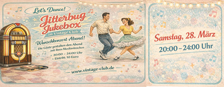 Schickt eure Songwünsche einfach an info@worldofswing.com oder gebt sie im Vintage Club ab und wir stellen eine tolle Playlist mit euren Favoriten zusammen.